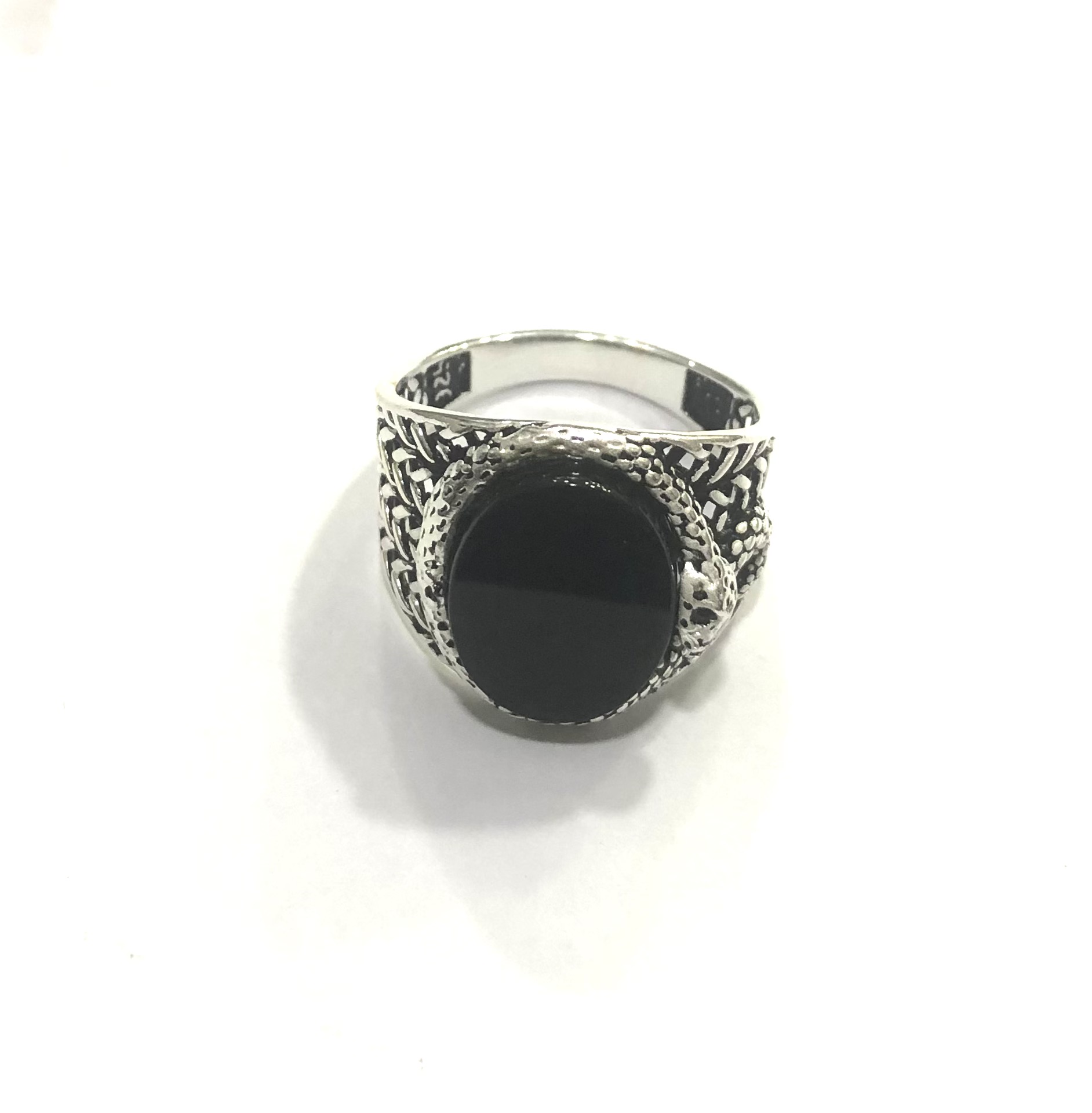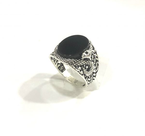 Bague homme en argent serpent avec Pierre onyx(non disponible)