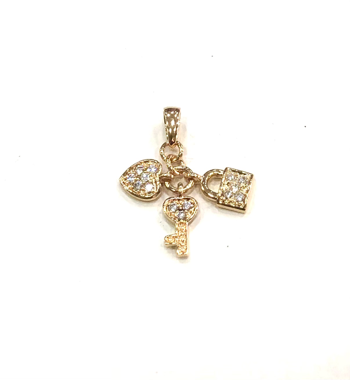 Pendentif en plaqué or coeur,cadenas,clé avec oxyde de zirconium